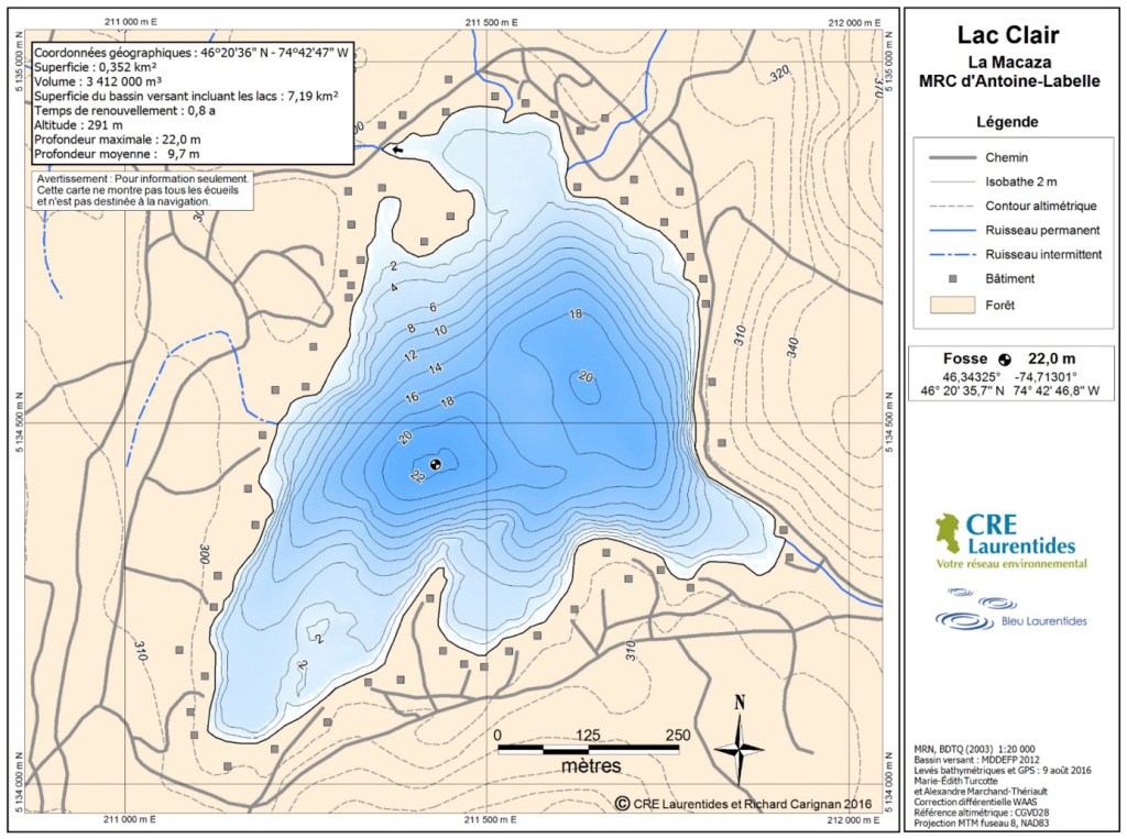 Carte des sentiers environnants du Lac Clair
