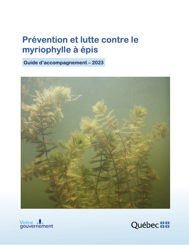 Le myriophylle à épis est une plante aquatique originaire de l’Asie présente au Québec depuis au moins 1958. Il est aujourd’hui recensé dans plus de 200 lacs et rivières de la province. Le myriophylle à épis peut créer des herbiers très denses et atteindre la surface de l’eau grâce à ses longues tiges, lesquelles se fragmentent abondamment durant la saison estivale. Lorsque les fragments de tiges sont transportés par le courant ou les embarcations vers de nouveaux secteurs et de nouveaux plans d’eau, ils peuvent s’enraciner et former de nouveaux herbiers. Le myriophylle à épis peut aussi nuire à la pratique d’activités et, dans le cas d’infestations sévères, engendrer une dépréciation de la valeur des propriétés riveraines.